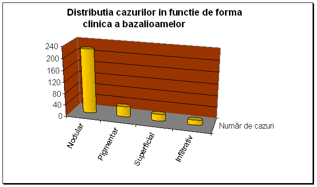 . Din studiul formei clinice realizat pe acelasi esantion de 300 de bolnavi, s-a remarcat predominanta formei nodulare: 74,66% din cazuri, date in conformitate cu cele din literatura de specialitate.