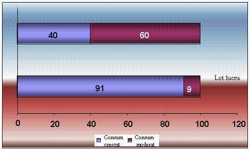 Astfel,91 %dintre subiecti afirma consumul produselor de patiserie cu o frecventa de 3 -5 ori pe saptamana .Mancarurile grase , sosurile , maionezele sunt preferate de 87% dintre acestia iar restul de 13 % nu recunosc vreo preferinta pentru aceste sortimente alimentare. La fel de important este de remarcat ca 80 % prefera carnea rosie spre deosebire de restul de 20% care prefera carnea slaba.