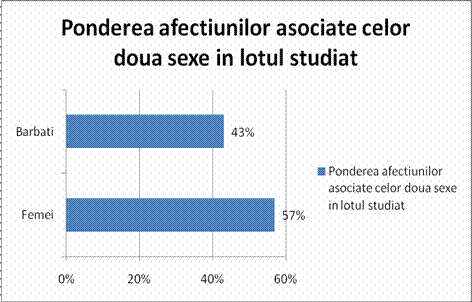 Grafic nr 20-Distributia pacientilor in functie ponderea afectiunilor asociate celor doua sexe in lotul studiat