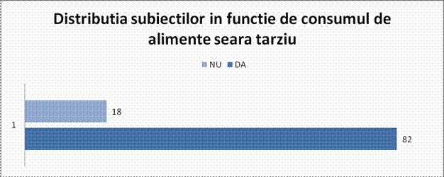 Grafic nr 24 - Distributia subiectilor in functie de consumul de alimente seara tarziu