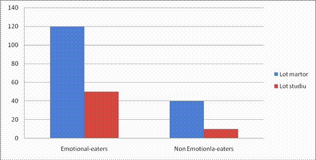 Majoritatea persoanelor obeze fac parte din categoria emotional-eaters indiferent de prezenta sau nu a diabetului zaharat care pare sa nu influenteze atitudinea pacientului fata de alimentatie.Predispozitie pentru "mancatul emotional"au avut si pacientii supraponderali din lotul de studiu ,dar mai ales pacientii obezi din lotul martor.