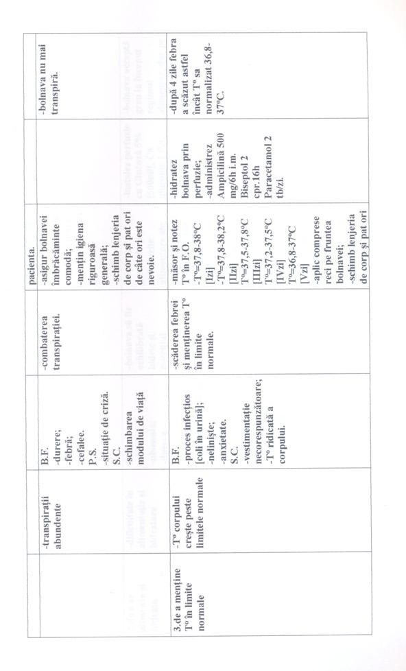 In ceea ce priveste supravegherea si notarea functiilor vitale toate cele trei paciente au fost cooperante. Functiile vitale cu mici diferente de valori au fost notate pe foile de temperatura.