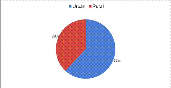 mediul de provenienta a fost de 61,99% mediul urban fata de