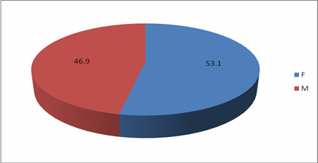In tabelul de mai sus e prezentata distributia tipului de diabet in functie de sex. Se observa ca din cei 224 de pacienti 143 (63.84%) prezinta diabet de tip II. Ca distributie pe sexe au fost alese aleator mai multe reprezentate de sex feminin, probabil din cauza faptului ca populatia respectiva supusa esantionarii o mare parte au fost reprezentate de femei, dar de aici nu se poate trage concluzia ca femeile prezinta diabet in proportie mai mare decat barbatii. Graficele sunt in mai jos.