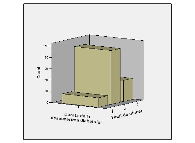 Se observa din datele afisate mai sus ca, in ceea ce priveste o evolutie sub 10 ani, procentul crescut este prezent la pacientii cu diabet de tip I, aproximativ 58%, fata de 42% la cei cu diabet de tip II.