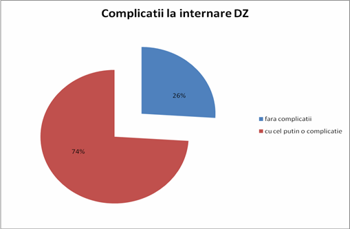 De asemenea in cadrul aceluiasi studiu s-a evaluat pe un lot de 200 de cazuri, existenta complicatiilor la pacientii nou-internati, nedescoperite anterior. Astfel din cele 200 de cazuri, un procent de 74% au prezentat cel putin o complicatie fata de 26%, care nu aveau nici una, acest lucru studiat in contextul ambelor tipuri de diabet, plus cele necunoscute sau prea putin studiate.