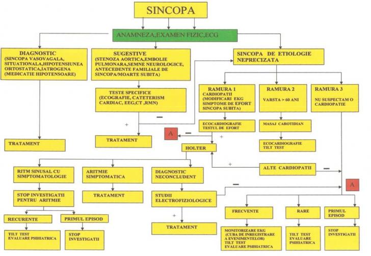 Anamneza si examenul fizic sunt cele mai specifice si sensibile cai de a evalua o sincopa.Prin aceste metode diagnosticul este stabilit la 50- 85 % din pacienti.Nici un alt test de laborator nu este mai eficace.1