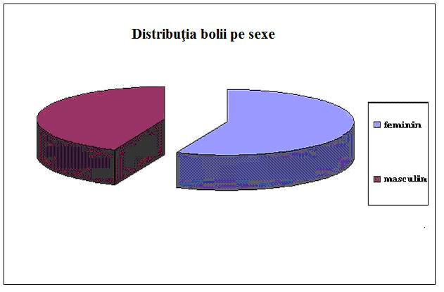 2. Analiza diferentiata, in functie de sex a tulburarii schizoafective nu releva variatii semnificative, notandu-se totusi o frecventa mai mare a bolii la sexul feminin, de 56,36 %, comparativ cu cel masculin, prezent in 43,64 % din cazuri.