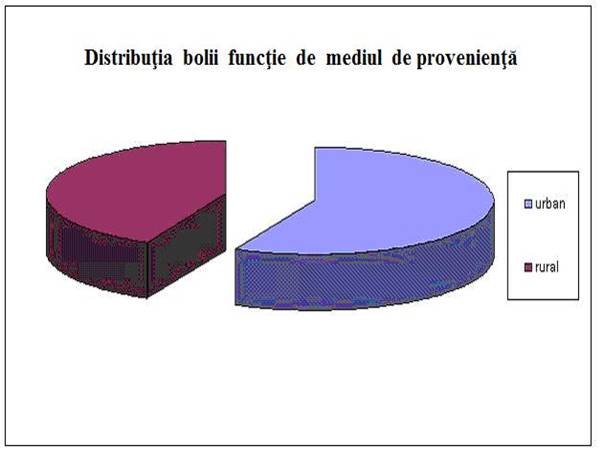 Raportat la mediul de provenienta al pacientului, cea mai mare frecventa a tulburarii schizoafective se situeaza in mediul urban 57,27% comparativ cu mediul rural prezent in proportie de 42,37 %.