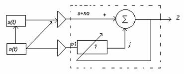 Semnalul util S+no se transmite pe canal iar pe alt canal se receptioneaza numai zgomotul n1 , necorelat cu semnalul dar corelat cu zgomotul no.