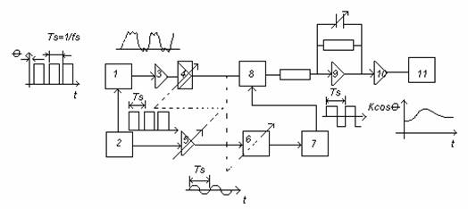8- detector sensibil la faza:semnalul demodulat sincron cu semnal de