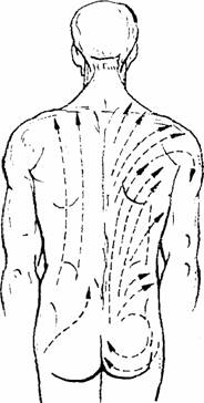. Presiunile: - se executa cu degetele mari ale mâinilor; se merge de sus în jos pe lânga coloana, presând în dreptul fiecarei vertebre, mâna stânga actionând pe partea stânga, iar dreapta pe partea dreapta a coloanei vertebrale.