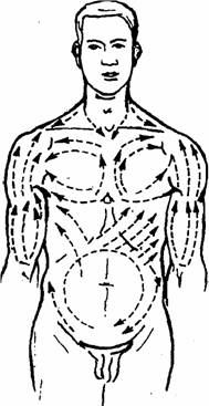 Netezirea: Palmele aluneca în jos, peste gât, pornind din regiunea cefei si pâna la umeri. Pentru ca alunecarile sa fie cât mai lungi, se începe cu radacinile mâinilor si se termina cu vârfurile degetelor.