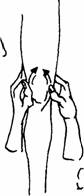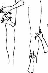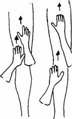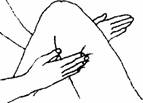 . Degetele mari aluneca unul dupa altul în miscari scurte si dese de pe rotula spre pulpa, iar apoi de pe rotula spre gamba.