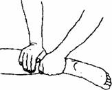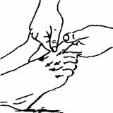 . Se apuca de-o parte si de alta laba piciorului cu ambele mâini, palma fiind plasata pe partea anterioara, iar degetele pe talpa. Se trag degetele apasând cu putere dinspre mijlocul talpii înspre lateral.