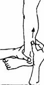 . Din aceeasi pozitie ca mai sus se fac tensiuni între metatarsiene miscându-le unul pe lânga altul în sus si înjos.