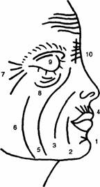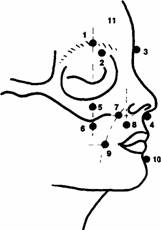 nasului si coboara în spatele comisurii buzelor), pe o linie