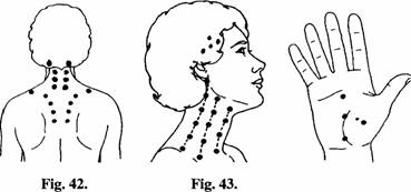 gâtului, pe tâmple (fig. 43) si pe palme (fig. 44).