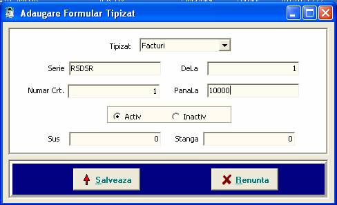 Se acceseaza, in functie de cerinte, fereastra de adaugare/modificare/stergere formulare tipizate pentru facturi.