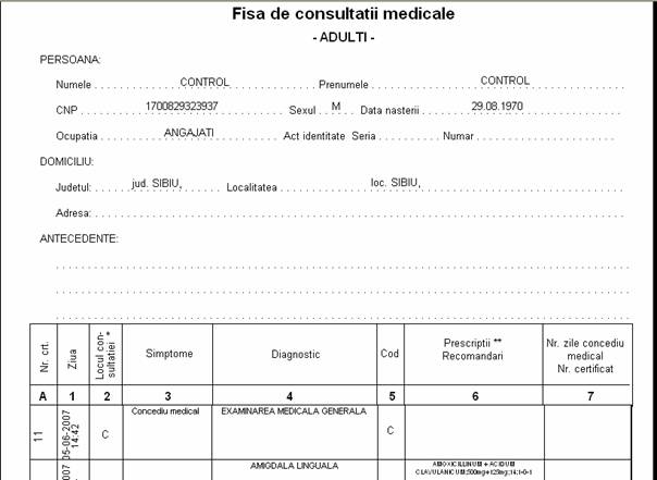 Modificare Persoana , daca e cazul, si tiparirea Fisei de Consultatii la cerere.