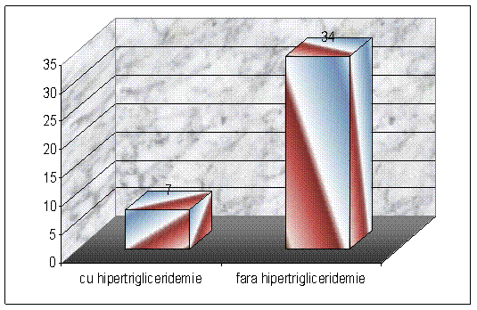 In lotul studiat 7 pacienti (17%) aveau niveluri ale trigliceridelor plasmatice peste normal (figura 5).