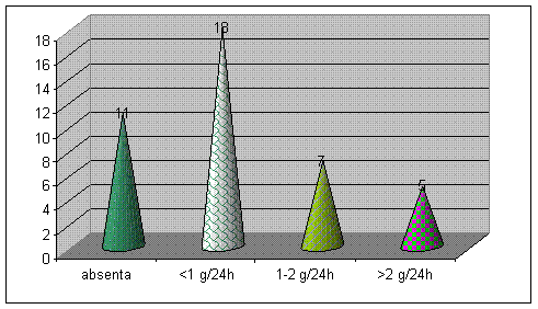 Este rareori masiva, ajungand la valori de 1-2 g/24h. Cel mai frecvent este insa minima sau chiar absenta.