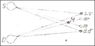 Existând un singur centru de proiectie, punctele de ancorare ale celor doi ochi sunt corespondente, dând imagini vazute în aceeasi directie.