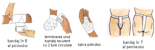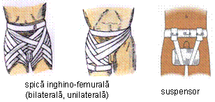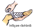 e) la nivelul degetelor: înfasare circulara, înfasare în 8, spica;
