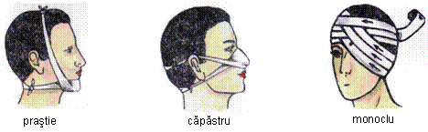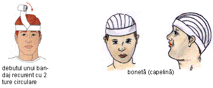 a) la nivelul calotei craniene: capelina (boneta), mitra lui Hippocrat, etc.;