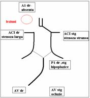 Pentru cazul īn discutie, schema functionala a poligonului Willis, vaselor care īl alimenteaza si localizarea leziunilor de tip IL este redata īn schema din fig 5