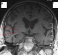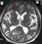 Examenul MRI cerebral efectuat peste doua saptamāni arata aceleasi zone milimetrice de hipointensitate īn T1 si hiperintensitate īn T2 īn substanta alba la nivelul lobulul temporal drept, imediat subcortical.