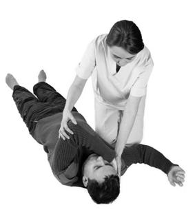 salvatorul ingenuncheaza lateral de victima aflata in decubit dorsal si cu membrele pelvine intinse;