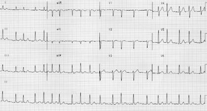 Unda P negativa în DI, pozitiva în AVR; Complex QRS cu aspect inversat între DI si AVR.