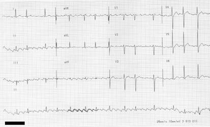 Ritmul normal este ritmul sinusal = unde P pozitive în toate derivatiile, ( cu exceptia derivatiei aVR unde este negativa) în relatie stabila cu complexul QRS ( T1).
