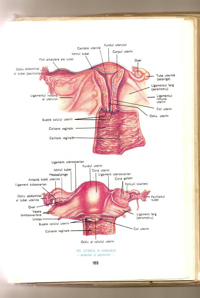 6. Extremitatea uterina sau inferioara e mai ascutita; pe ea se prinde ligamentul propriu al ovarului.