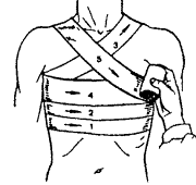 In caz de aplicare a pansamentului pe torace, se desfasoara 1m de tifon si se pune sa atarne liber pe umarul stang, cu trecere pe partea dreapta a toracelui. Bandajul se incepe din partea de jos a cutiei toracice de la stinga la dreapta in forma de spirala. Apoi de sub fosa axilara stanga tifonul de baga cu capatul liber peste umarul drept.