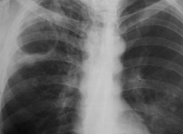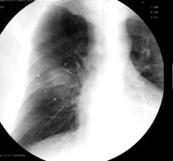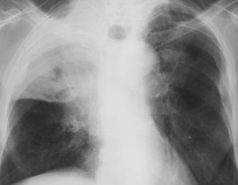 Fig. 20 – Caverna TBC cu pereti subtiri, intens opaci, subclavicular dreapta (caverna fibroasa) |