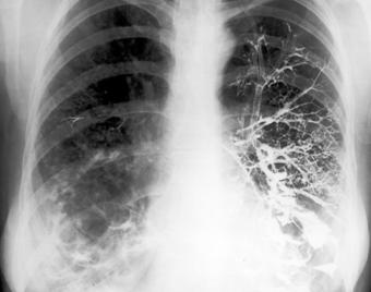 Antreneaza un sindrom alveolar sistematizat cu extindere segmentara sau lobara (cand este descoperit tardiv), delimitat de o scizura. Topografia procesului patologic este variata, practic orice segment putand fi afectat, dar exista o predilectie pentru segmentele lobului inferior.