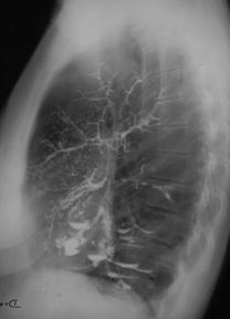- de la nivelul hilurilor pleca spre periferie, mai ales catre baze, imagini opace liniare fine, datorate infiltratiei peribronhovasculare.