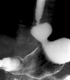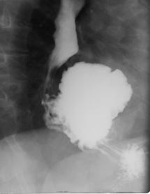 hernii prin brahiesofag (congenital sau secundar unei esofagite peptice): cardia este situata intratoracic, esofagul este scurt, implantat in capul pungii herniate;