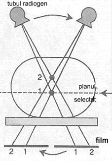 Tomografia - permite inregistrarea pe film a unei sectiuni dintr-un organ prin stergerea planurilor adiacente. Aceasta se obtine prin baleiajul tubului in jurul planului de examinat.