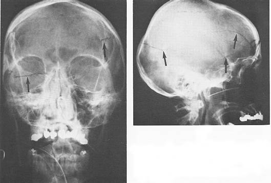 Fig. 98 – Fractura de bolta caraniana fronto-parietala stanga si parieto-temporo-occipitala dreapta |