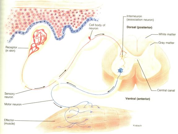Fig. 3. Schema arcului reflex medular (cf. Creager)