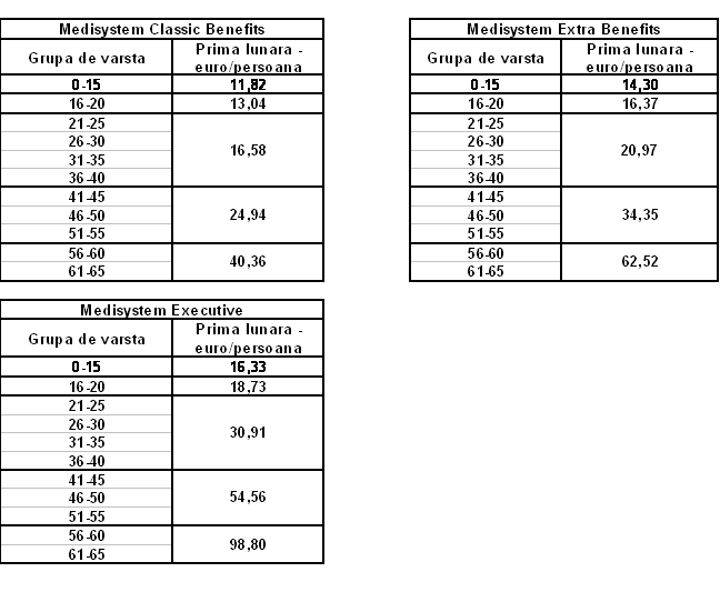 Medisystem Classic Benefits Medisystem Extra Benefits Medisystem Executive |