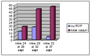 Vârsta de gestatie:≥24sapt.-<28sapt.19 prematuri; ≥28sapt.- <32sapt.44 prematuri ;≥32sapt.-<37sapt.47 prematuri