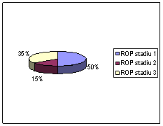 50% din cazuri au prezentat ROP stadiu 1, 14,7% ROP stadiu 2, iar 35,3% ROP stadiu 3.