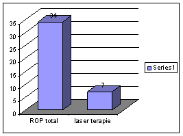 Retinopatie de prematuritate au prezentat 34 cazuri. ROP stadiu 1 a fost întâlnita în 17 cazuri, stadiu 2 în 5 cazuri iar stadiu 3 în 12 cazuri la 7 din acestea practicându-se laserterapie la IOMC Bucuresti si în centrul Universitar Cluj-Napoca.