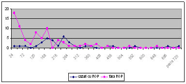 Pacientii ce au prezentat ROP au fost expusi la mai mult de 120 ore de oxigenoterapiue fata de cei neafectati la care majoritatea au avut sub 218 ore de oxigenoterapie.