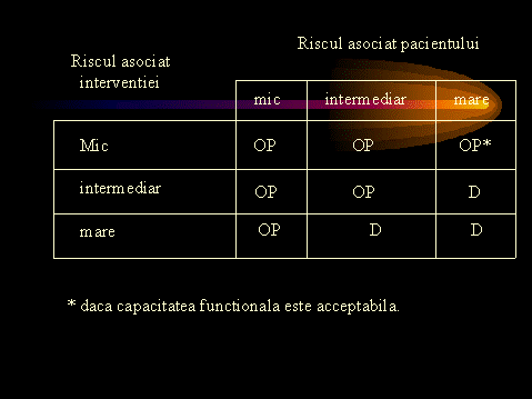 Daca riscul chirurgical este intermediar sau mic se va putea efectua interv chirurgicala iar postop se vs face o stratificare a riscului.