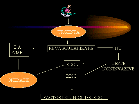 Pentru evaluarea cardiaca preoperatorie prima intrebare care se pune este cit de urgenta este interventia chirurgicala insa indiferent de statusul cardiac op va fi efectuata iar evaluarea cardiaca si stratificarea riscului se fac de obicei postoperator in urgente.